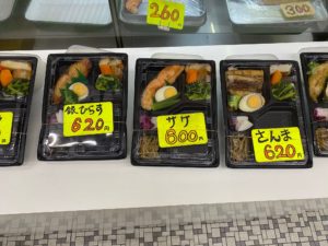 魚だけではなく、揚げ物や肉のお弁当もあります。