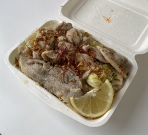 (今回は塩麹豚肉とキャベツ炒め丼を食べました!)
